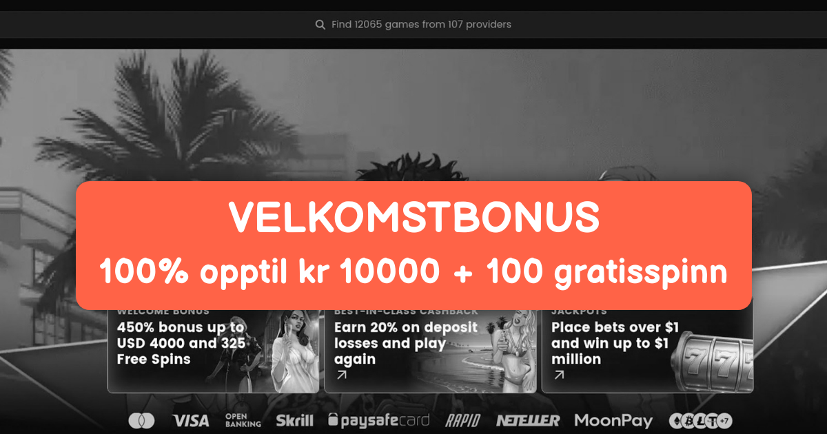 Velkomstpakken oppgis som opptil 40 000 kr + 325 gratisspinn fordelt over flere innskudd. Omsetningskrav omtales som høye og kan endres. Sjekk alltid gjeldende satser, tidsfrister, maksimale innsatser og spillbidrag i bonusvilkårene før aktivering for å unngå begrensninger ved uttak.